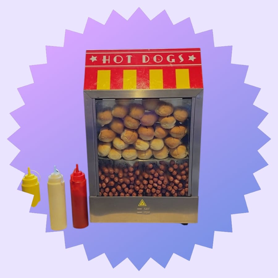 • Hotdog machine with buns and condiments included for 100 serves