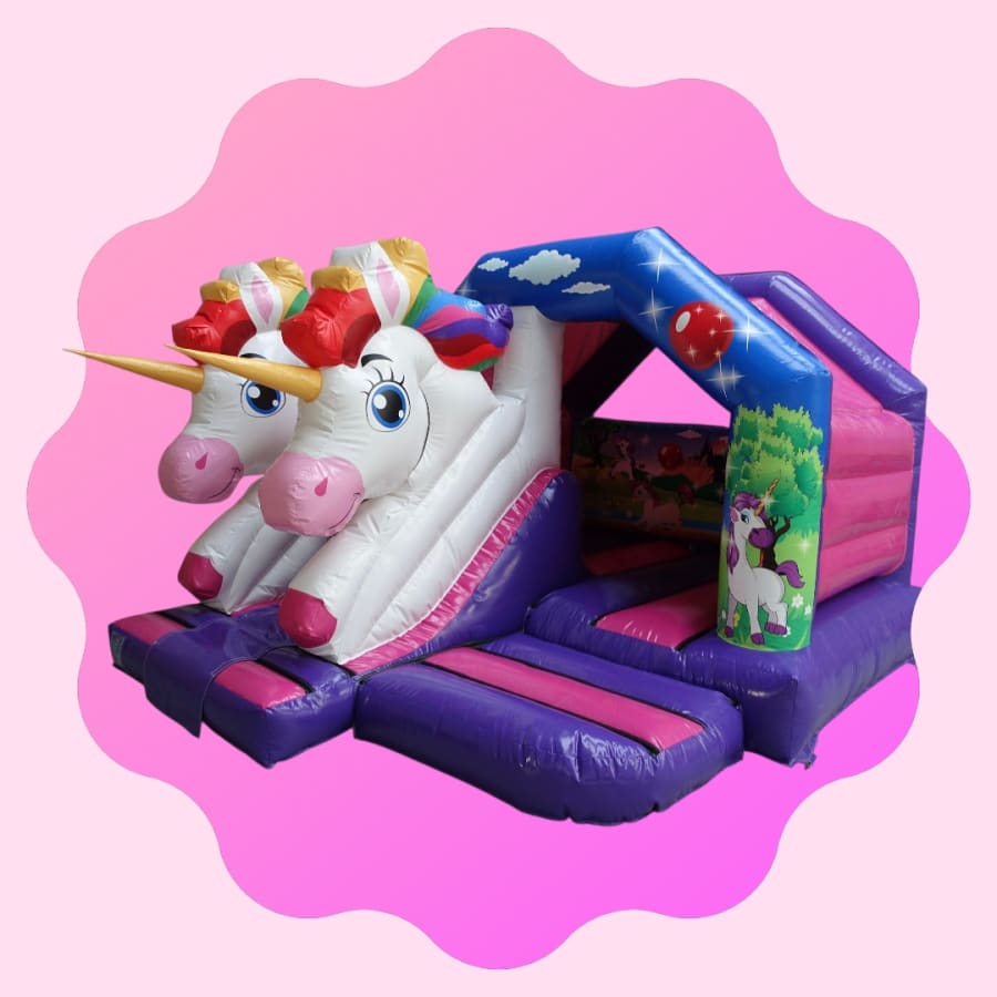 - Eye-Catching 3D Design: Featuring two majestic unicorn heads with spiralling horns, this combi unit is not just an inflatable—it's a show-stopper. Its colourful, 3-dimensional elements captivate children and adults alike, creating a magical atmosphere for any occasion.
