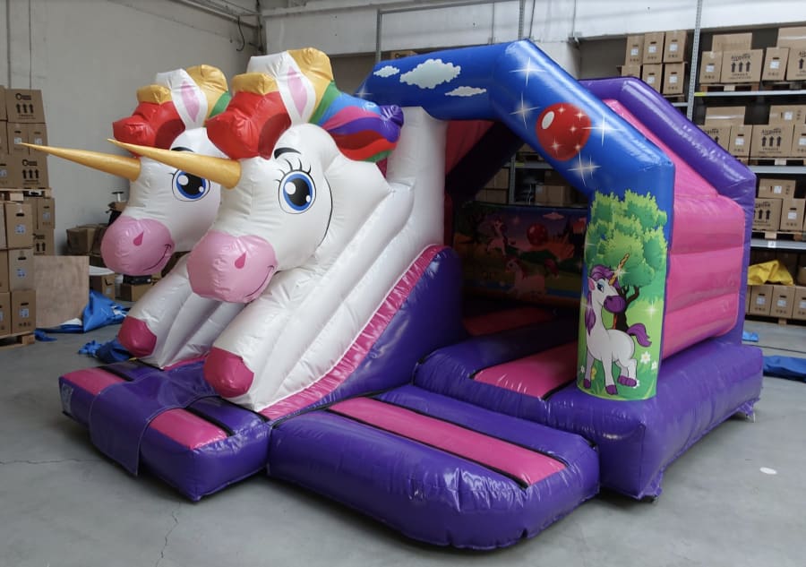 - Eye-Catching 3D Design: Featuring two majestic unicorn heads with spiralling horns, this combi unit is not just an inflatable—it's a show-stopper. Its colourful, 3-dimensional elements captivate children and adults alike, creating a magical atmosphere for any occasion.
